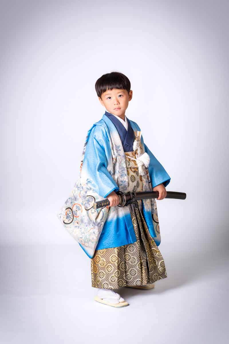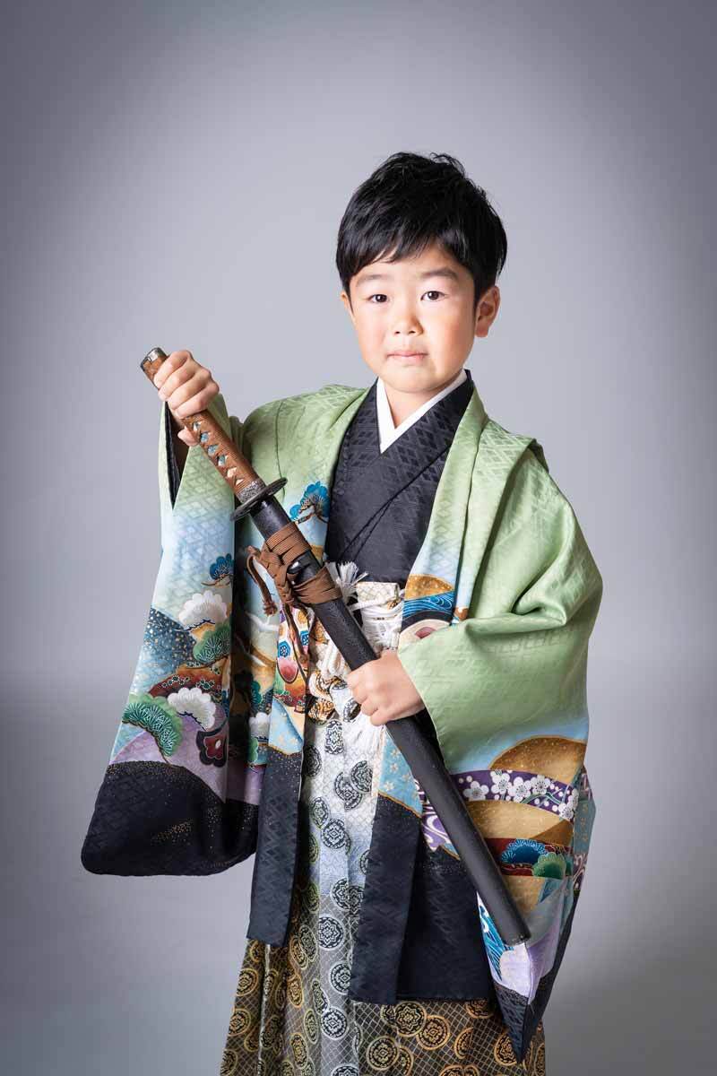 5歳の男の子が撮影で剣を持った瞬間の凛々しいお顔