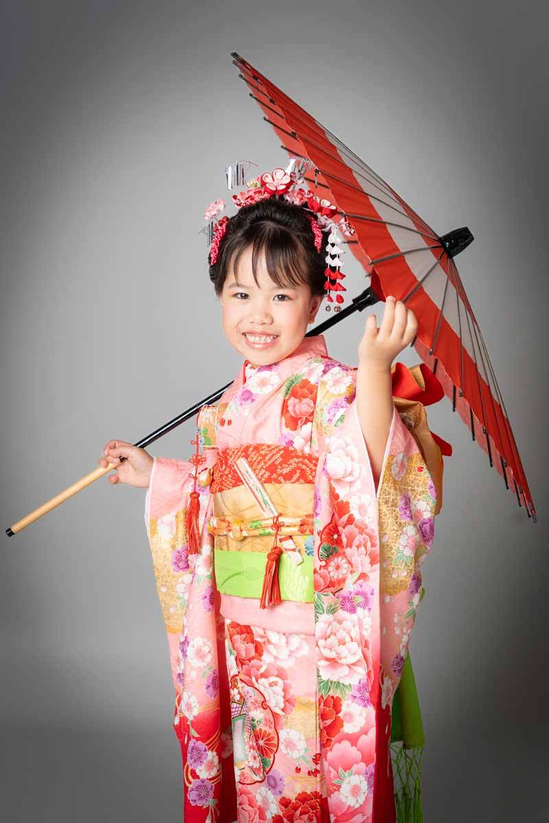 初めての着物に少し緊張気味だったお子様が、撮影が進むにつれて自然な笑顔を見せてくれた瞬間。